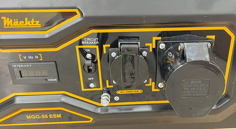 Посилена розетка на 220В/32А дає змогу під'єднувати обладнання з підвищеною потужністю і використовувати генератор для проведення будівельних або ремонтних робіт у місцях, де відсутня електромережа.